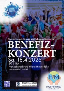 Ein ganz besonderes Highlight mit neuen, schwungvollen Liedern und Balladen. Der Eintritt ist frei, über Spenden würden wir uns sehr freuen, denn der Erlös aus diesem Konzert geht an den Verein Hoffnung für Menschen e.V. und an den Franziskanerorden Ingostadt.